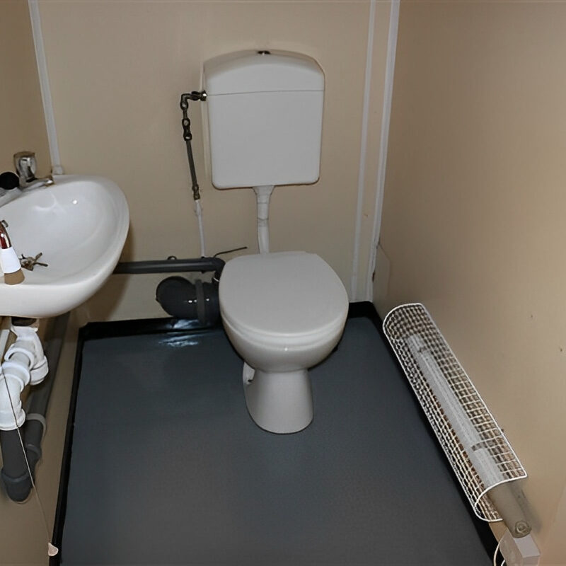 Der Toilettenbereich umfasst: Separater Eingang, Handwaschbecken, Beleuchtung, Heizung