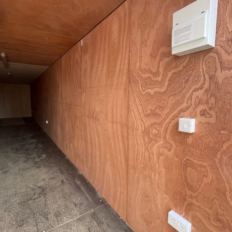 Ja, wir bieten Innenausbau an – z. B. Beleuchtung, Regale, Fenster, Belüftungssysteme.