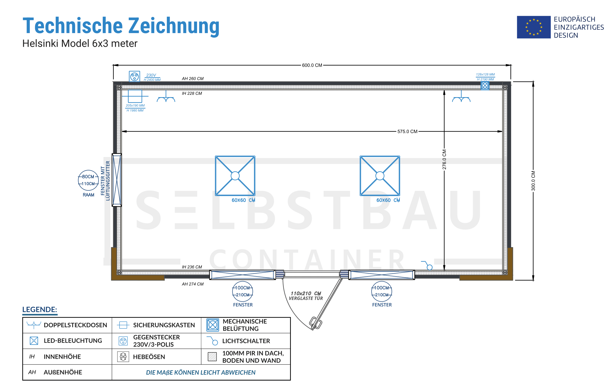 Außenmaße: 600 x 300 cm
